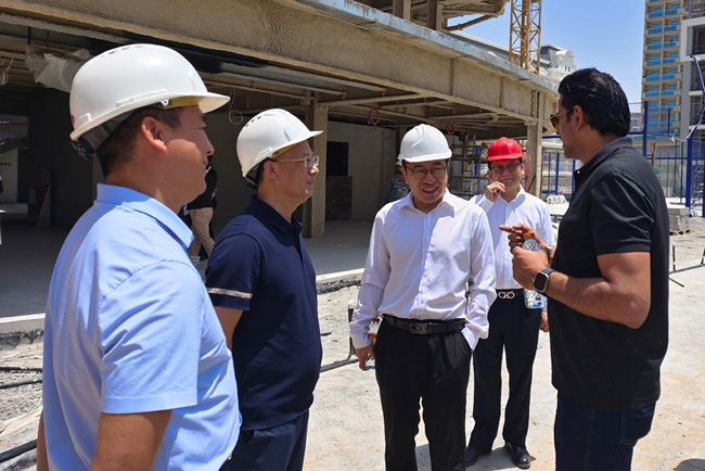 26日,何亮陪同集團公司外部董事李新亞、齊國生、蘇力、李福申、張雅林,集團公司董事會秘書朱珉一行實地調研了中節能鐵漢迪拜麥格云溪項目。集團公司外部董事強調,中節能鐵漢要全力以赴為海外業務做好服務保障工作,推行精細化管理,培育迪拜分公司自主經營和創效能力,推動海外屬地長期滾動發展;迪拜分公司要搶抓時間進度,在云溪項目合同簽署后,加快進行項目進度排期,全力推進項目部按計劃進場,加強項目施工管理,全力打造客戶滿意的精品工程,在阿聯酋乃至中東地區打響“中國節能”品牌。