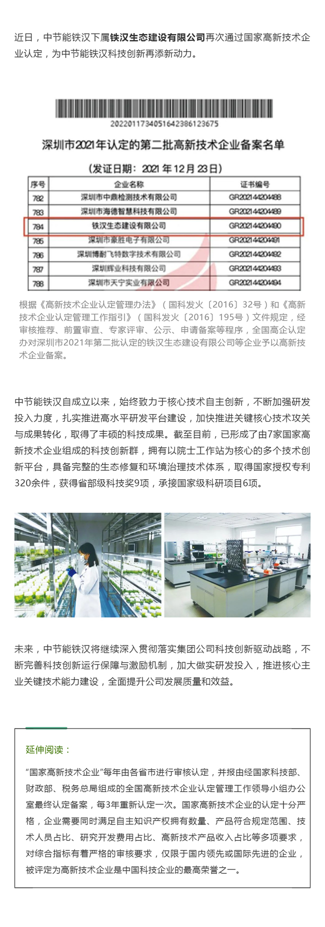 科技創(chuàng)新丨中節(jié)能鐵漢下屬鐵漢建設(shè)再次通過國(guó)家高新技術(shù)企業(yè)認(rèn)定