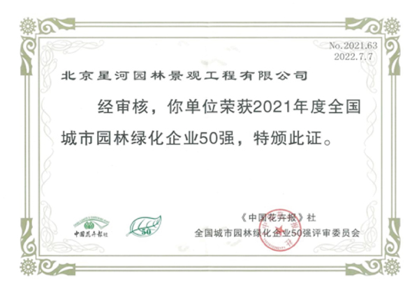 喜報 | 鐵漢星河蟬聯全國城市園林綠化企業50強