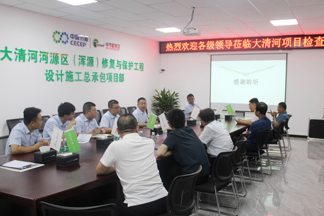 7月24日,山西省大同市渾源縣縣長趙昱清一行到中節(jié)能鐵漢所屬鐵漢環(huán)保承建的大清河河源區(qū)(渾源)修復與保護工程項目調(diào)研,實地查看項目建設情況,并召開座談會。