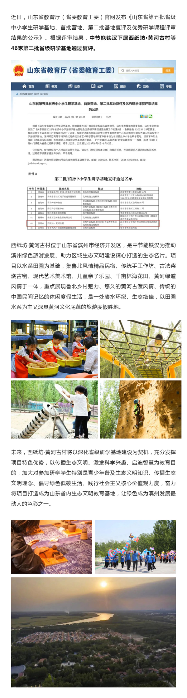 西紙坊·黃河古村通過山東省第二批省級中小學生研學基地復評