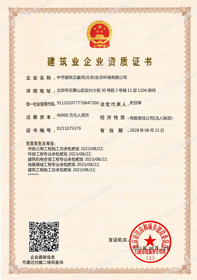 近日,經(jīng)北京市住建委核準(zhǔn),中節(jié)能鐵漢所屬鐵漢星河取得市政公用工程施工總承包貳級(jí)、環(huán)保工程專業(yè)承包貳級(jí)、建筑機(jī)電安裝工程專業(yè)承包貳級(jí)、地基基礎(chǔ)工程專業(yè)承包貳級(jí)、建筑工程施工總承包貳級(jí)5項(xiàng)資質(zhì)。