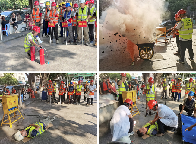 此次應急演練活動主要包括消防應急演練、觸電應急演練、高處墜落演練。消防演練部分主要模擬火災事故發生時的應急響應和初期滅火,以檢驗項目部在火災發生時的快速反應能力和協同作戰能力。觸電應急演練則主要針對作業現場可能發生的觸電事故,學習如何正確使用安全工器具,了解觸電后的急救措施以及心肺復蘇法等。高處墜落演練是為了模擬高處作業過程中發生意外墜落的情況,檢驗應急預案的有效性和可操作性,同時提高作業人員的安全意識和應急處置能力。演練過程中,項目部全體人員積極參與,互相配合,順利完成了各項演練任務。