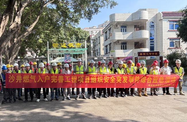 11月1日,中節能鐵漢沙井街道衙邊、共和等社區及周邊零散樓宇管道天然氣入戶完善工程項目部(下稱沙井燃氣項目部或項目部)在深圳市寶安區沙井街道衙邊項目工地組織開展綜合應急演練活動。該活動旨在強化突發事件防范應對工作,錘煉項目部應急救援協同作戰能力,檢驗各類條件下現場指揮保障能力。
