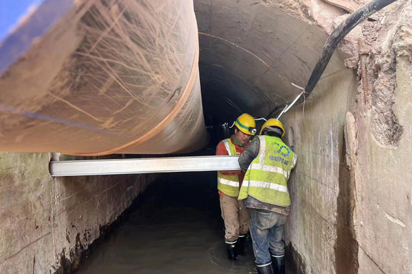 在創(chuàng)新工藝工法方面,針對(duì)隧洞內(nèi)空間狹小、運(yùn)輸距離長(zhǎng),PE管材超長(zhǎng)超重不便運(yùn)輸及吊裝,項(xiàng)目部與班組共同開展“五小”創(chuàng)新創(chuàng)效,通過(guò)改裝自制運(yùn)輸臺(tái)車、設(shè)計(jì)自制小型移動(dòng)式提升門架等小發(fā)明、小創(chuàng)造,有效解決了超小斷面隧道長(zhǎng)、重管材的運(yùn)輸及吊裝技術(shù)難題,提高了作業(yè)效率。一系列推進(jìn)舉措,為項(xiàng)目安全、優(yōu)質(zhì)實(shí)現(xiàn)工期目標(biāo)奠定了堅(jiān)實(shí)基礎(chǔ)。