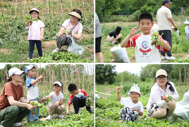 午飯后第一項(xiàng)是親子采摘活動(dòng),在枝繁葉茂的蔬菜園,孩子和家長們“小手拉大手”,動(dòng)手采摘體驗(yàn)勞動(dòng)樂趣。讓職工們在繁忙工作之余,能與孩子一起親近自然,在歡歌笑語中見證他們的成長,感受著他們的快樂。