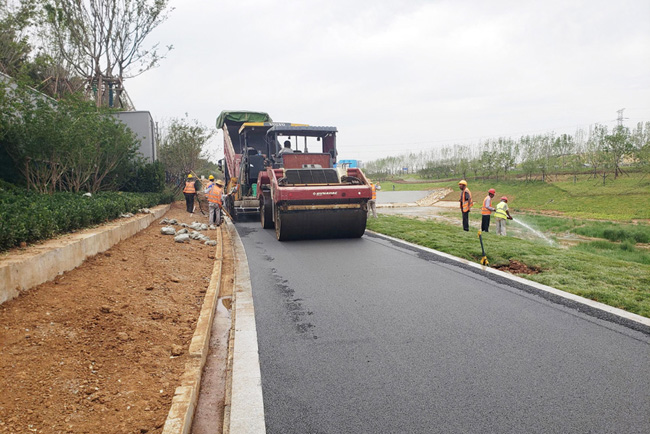 在煙臺萬華項目建設現場,滿載土石方的工程車來回穿梭,鏟土機、挖掘機等機械設備全速運轉。工人們忙碌地開展橋面清理、人行道鋪裝等作業。據了解,目前綠化地被、鋪裝進入收尾階段,預計7月底完成全部施工任務。同時,8月份,項目部對預驗收提出的問題進行逐條銷項整改,申請驗收,確保項目如期如質驗收完成。