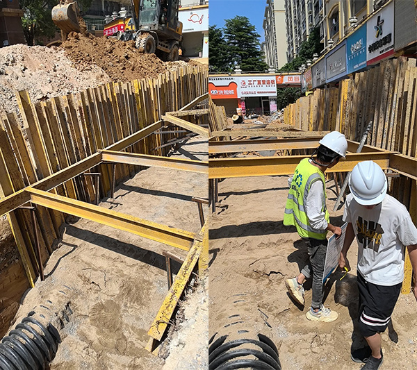 近日,在中節能鐵漢南安市官橋鎮區品質提升配套基礎設施建設工程-溫泉新都城雨污管道改造工程施工現場,工人們或忙著開挖路面,或忙著安放雨水管道,現場一派忙碌景象。